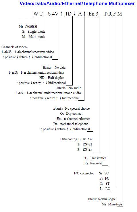 Fiber-optic video transceivers can simultaneously transmit 16 channels of 8-bit digitally encoded video / return or bidirectional data / unidirectional or bidirectional audio / Ethernet / Telephone / Dry contact over one multimode or single-mode optical fiber. These multiplexers are typically used i