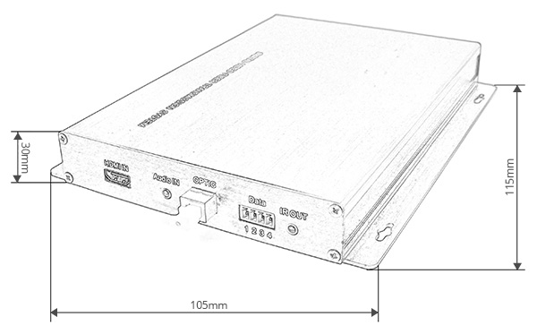 Product connection diagram![]() Description for HS-SDI Transmission: 1. Fiber-optic video transceiver mark: T: fiber-optic transmitter Light on, Fiber-optic video transceiver is working. 3. Fiber interface:LC interface(SFP)(Warring:When the device is power on,don’t look directly into the eyes,in order to avoid eyesight damage) 4.Receiver indication:Light on, Fiber-optic video transceiver is receiveing signal. 5.Video interface:T: HDMI video signal input interface. Light on, Fiber-optic video transceiver is receiveing video signal,or transmitting video signal. 7.Audio indication:Light on, Fiber-optic video transceiver is receiveing audio signal,or transmitting audio signal. 8.Data interface:reverse data output. Light on,data is transmitting . Light off,no data signal. 10.Lock indication:Light on,video data and audio data is locked. Dimension![]() Make to Order (Extend information)