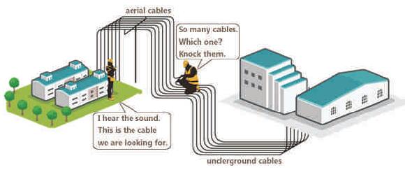 connector in the cable and knocking the cables.When knocking the specific cable, ST6700 Optical Cable Identifier will transform mechanical vibration to video and sound signal, which will help find the target cable. It could display the distance from the knocking point to the testing point. .